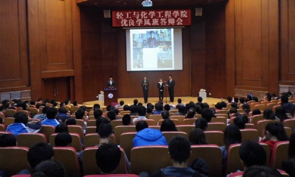 优良学风班评比活动是轻工与化学工程学院学风建设工作中的重要内容。本次优良学风班评比活动,创建、申请、实施历时1年,最终共有15个班级参与答辩, 其中2011级12个班级和2010级的3个班级。答辩会包含三个环节,即三分钟的PPT展示、一分半的选题答辩和老师提问环节。伴随着精彩纷呈的PPT,各个班级同学代表自信的讲述着过去一年班级中取得的各项成绩。尽管还有从金州实习基地匆忙赶回来的班级,但是他们的表现却毫不逊色。在选题答辩环节中,同学们可谓是对答如流,赢得台下阵阵掌声。评委老师根据各班的陈述有针对性的进行提问,答辩同学表现镇定,根据班级实际情况进行详实的阐述,并认真的聆听着老师们的意见和建议。