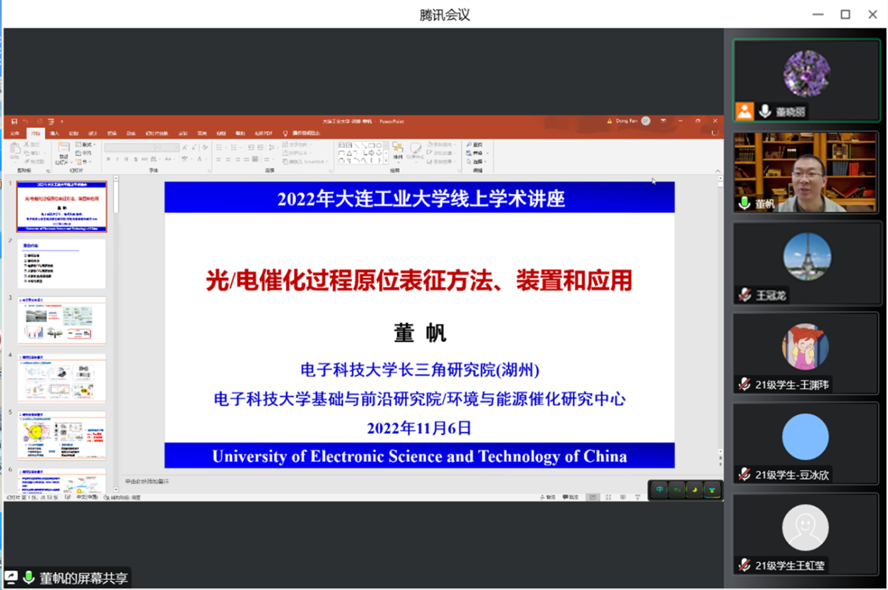 11月6日上午,电子科技大学董帆教授应轻工与化学工程学院环境科学与工程学科邀请与草莓视频app 师生开展线上学术交流。