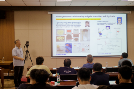 作了题为《Molten salt hydrate as an innovative solvent for biorefining lignocellulose》的学术讲座。