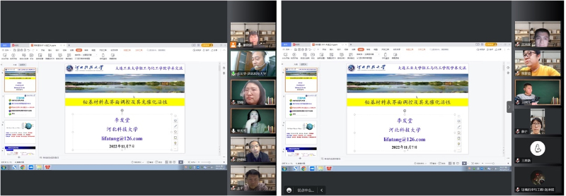 在交流讨论环节,针对学术报告中关于燃烧法制备催化剂如何控制升温速率以及富铋型卤氧铋中铋和卤素的比例对催化剂性能的影响等问题,学院教师与李教授进行了深入讨论,学术氛围热烈,拓宽了与会师生的学术视野,大家都表示收获很多。此次线上学术交流为师生提供了有益的学术交流途径,得到了学院师生们的一致认可。