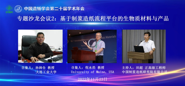 2022年11月23日,由中国造纸学会、草莓视频app 合作主办,辽宁省造纸学会、中国制浆造纸研究院有限公司、中国造纸杂志社协办的中国造纸学会第二十届学术年会以网络会议形式召开,本届学术年会聚焦国内外造纸技术重点发展方向与前沿领域,设置了网上学术报告厅和7场专题沙龙会议,会议注册代表400多人参会。