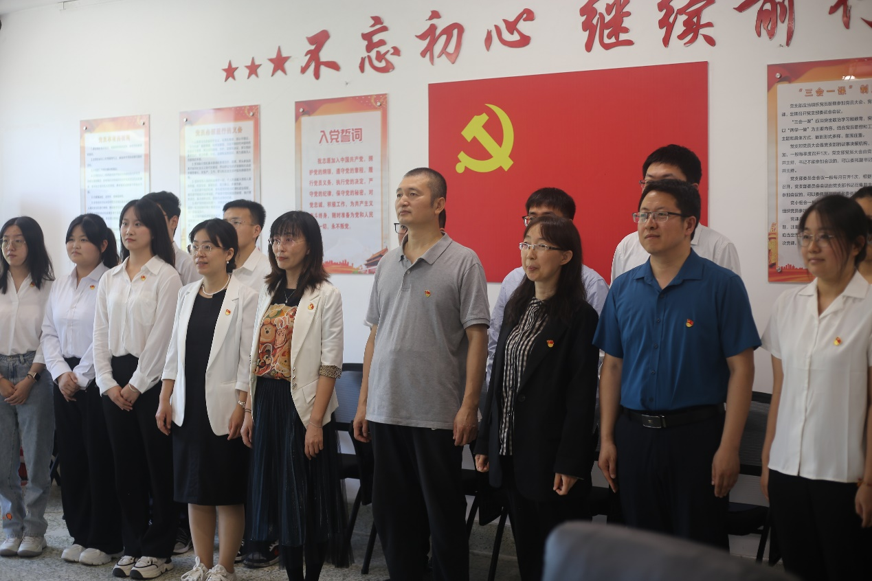 基础化学联合党支部组织全体研究生新党员庄严宣誓并邀请老党员为新党员佩戴党徽,激励其不断增强党员的责任感、使命感,充分发挥党员的先锋模范作用。学院副院长张锋重温入党的心路历程,并结合教学工作表示要以党建为引领,担负育人使命。教师党员于智慧同志分享了无机化学课程思政教学案例,党员教师们围绕教学过程中进行思政教育的体会进行了交流和讨论。