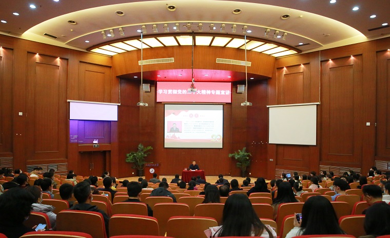 11月22日下午,校长李长吾在图书馆报告厅宣讲党的二十大精神,轻工与化学工程学院、生物工程学院师生党员及机关党总支人事处党支部全体党员参加宣讲会。